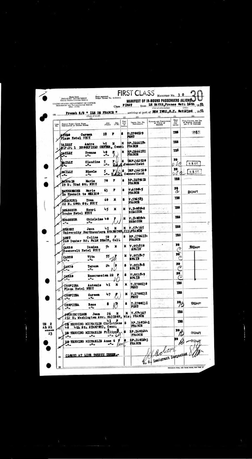 Documento de emigración hacia México del hermano de mi abuelo Emile Dominique (Emilio) Barreneche Etcheberry.